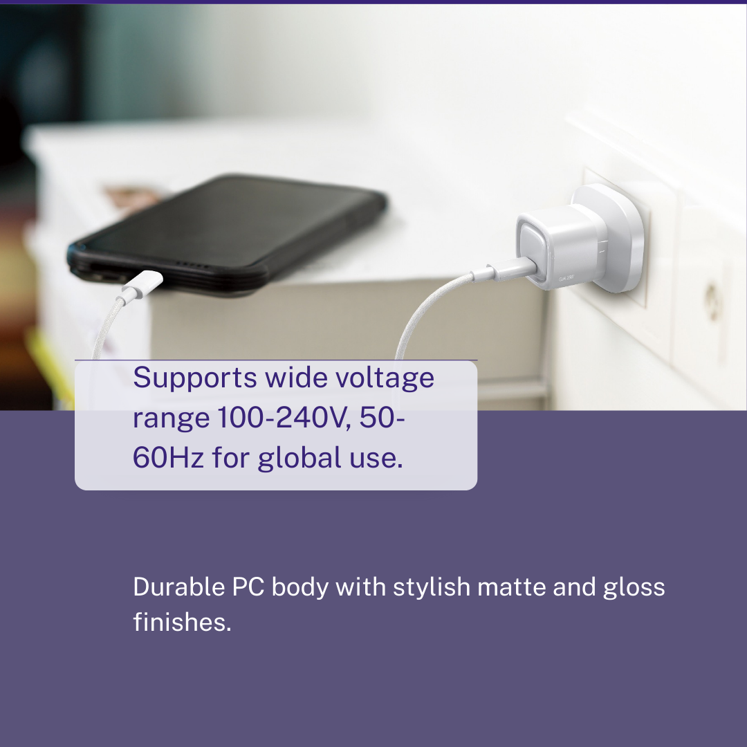 Model: Y-PA9-1Materials: PC, Matte & Gloss Finish Port: USB-CInput: 100-240V 50-6-Hz 0.8AOutput: USB-C: 5V=3A, 9V=2.77A (25W Max)Features: -Quick Charge / PD Technology -Compact and... Read more