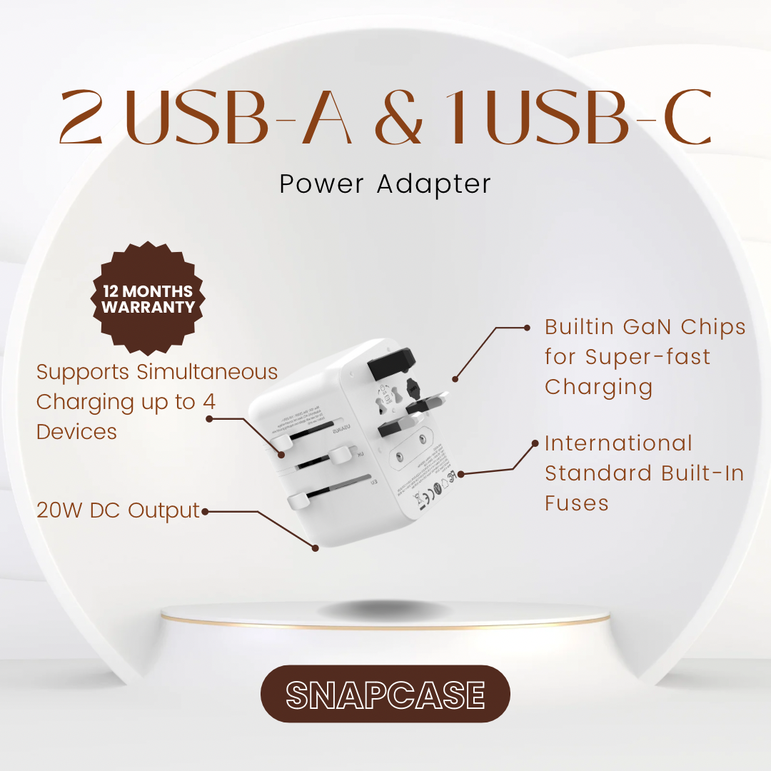 World Wide Travel Adapter with 2 USB-A & 1 USB-C Charging Ports (12 Months Warranty)