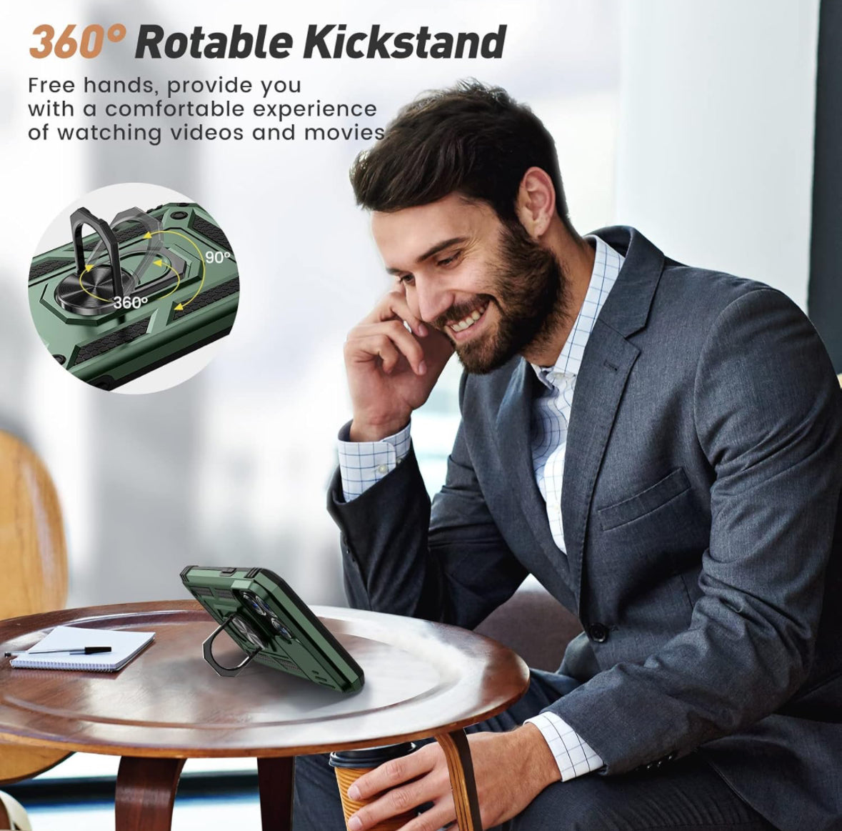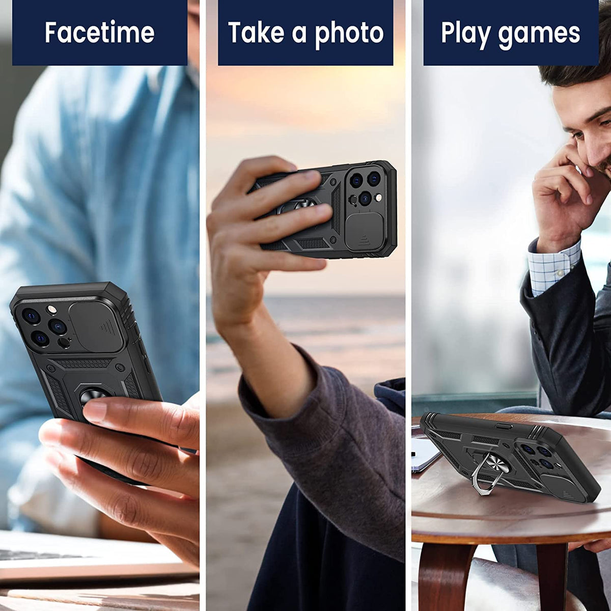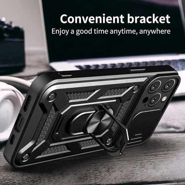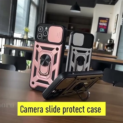 Introducing the Slide Camera Cover Phone Case with Ring Stand, the ultimate protection solution for your iPhone. Engineered for durability, this heavy-duty, military-grade shockproof rugged case offers unparalleled defense against drops, bumps, and scratches.