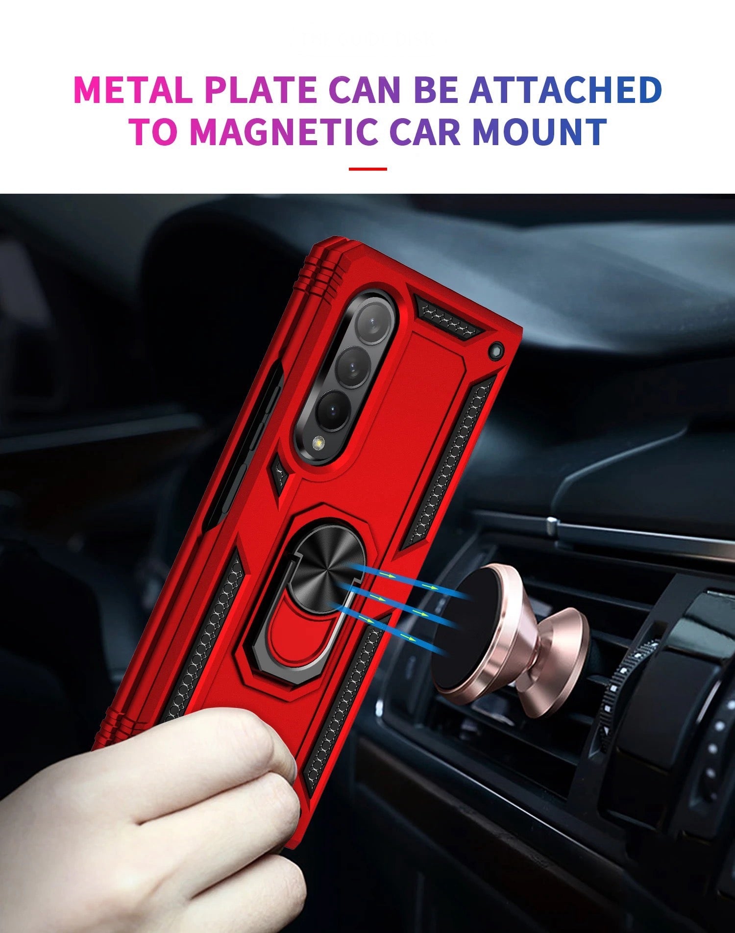 Shockproof Hard Case+Ring Holder, Magnetic Car Mount for Samsung Z Fold