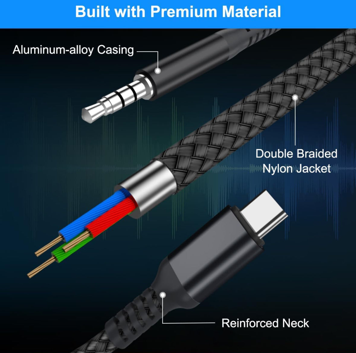 USB-C Silicone Nylon Audio Cable (12 Months Warranty)