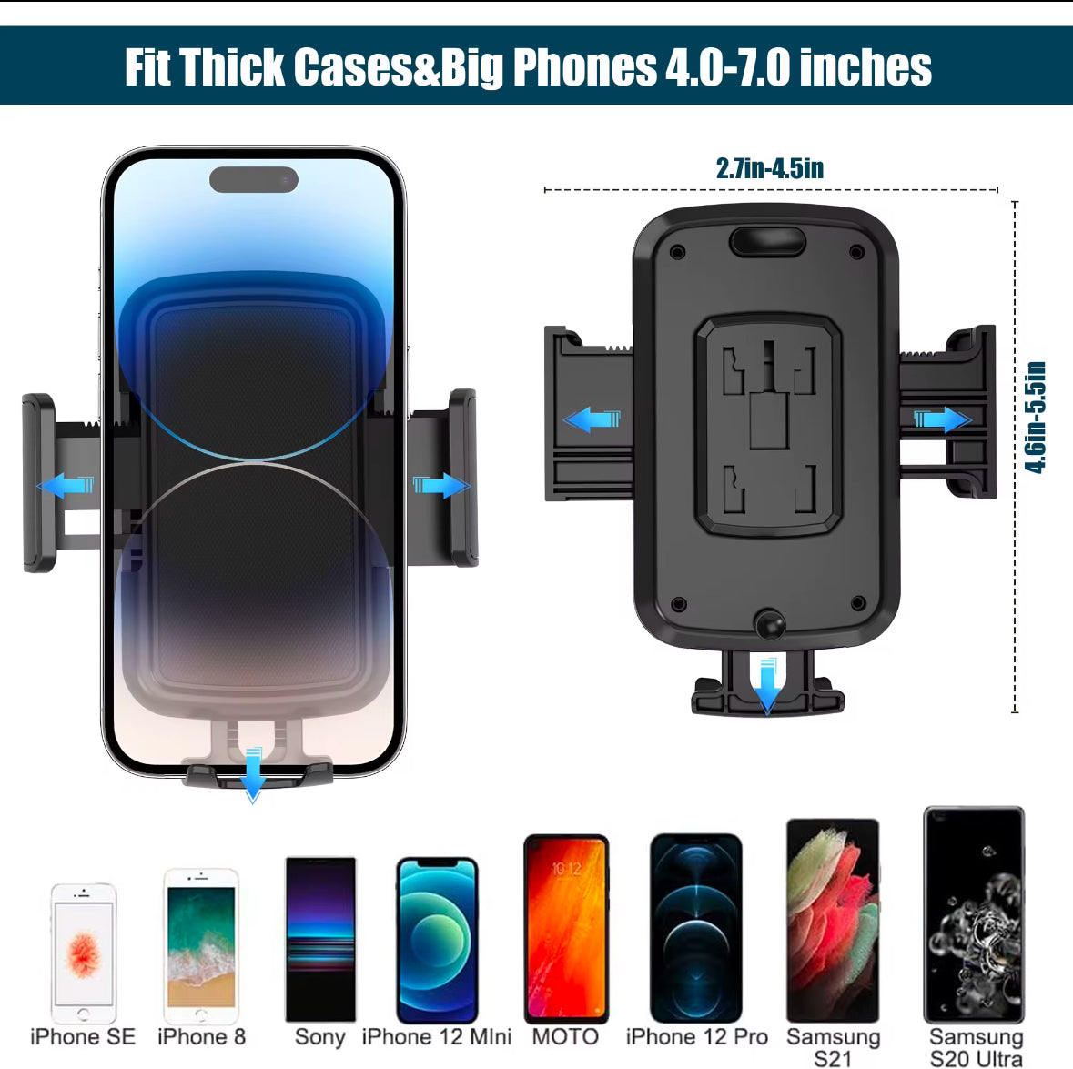 Model: Y-H38Material: ABS and Silicone Wide Compatibility:-Expandable cup mount width: 65mm to 283mm-Devices Ranging 4.7'' to 6.8''Key Features;-  360°Rotatable-  Shockproof Protection-... Read more