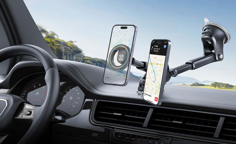 This compact and versatile magnetic holder ensures a secure grip on your phone while driving. With its strong and adjustable base, it can easily be mounted on your car's dashboard or windshield. Keep your phone within reach and in sight for safe and convenient use on the road.