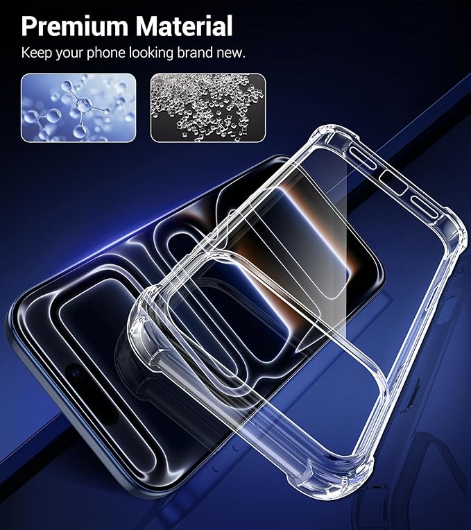 Maximum protection without hiding your iPhone 17 Pro. The Clear Anti-Shock Armor Case combines rugged, drop-resistant design with a transparent, slim profile that shows off your iPhone’s original look. Paired with a tempered glass screen protector, this kit provides full protection from drops, scratches, and everyday wear.